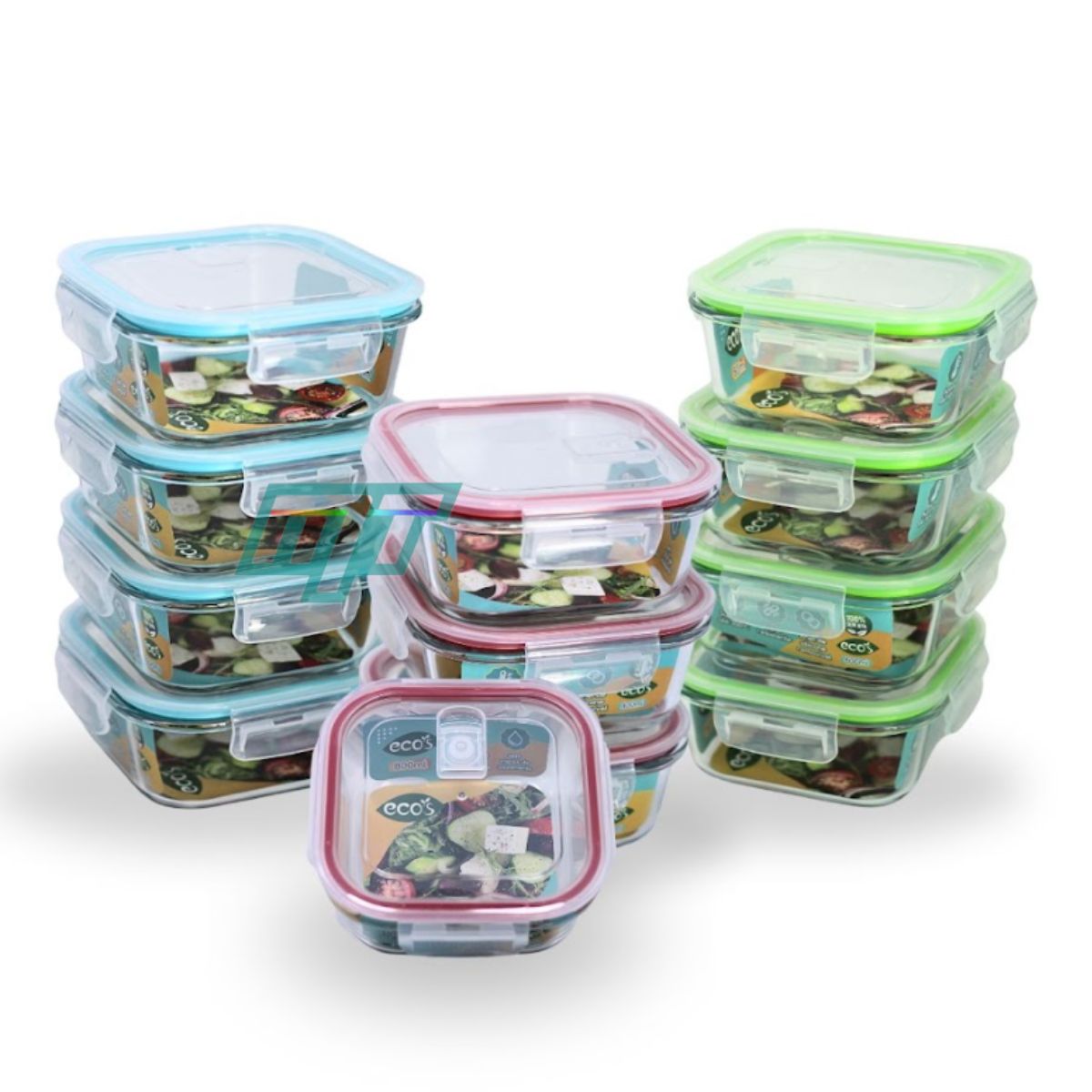 Kit 12 Potes Vidro Hermético Trava Quadrado 320 ml Marmita