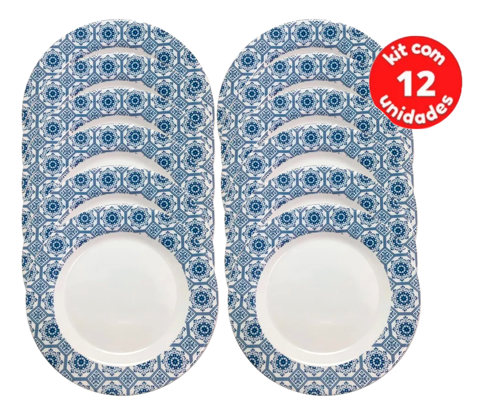Kit 12 Pratos Raso Decorado 25cm Melamina Refeição Festa