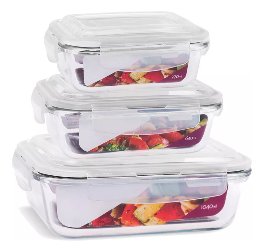 Kit 3 Potes Vidro Hermético Marmita Fitness 370 640 1040 ml