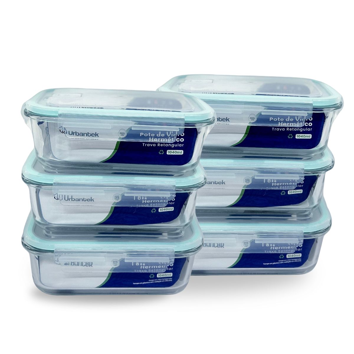 Kit com 6 Potes Herméticos de Vidro 1040ml Urbantek – Modelo KIT6-UD003