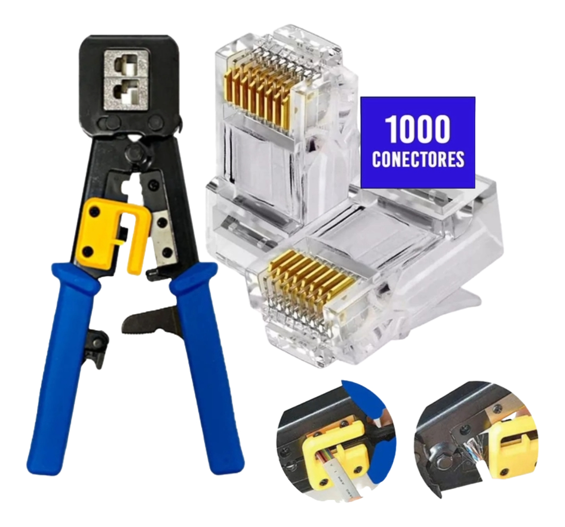 Kit C/ 1000 Conector Vazado Cat5 + Alicate RJ45 Cabo de Rede