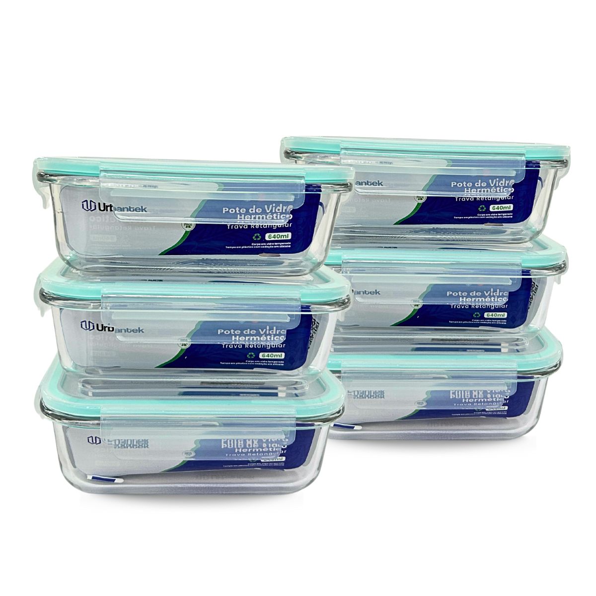 Kit com 6 Potes Herméticos de Vidro 640ml Urbantek – Modelo Kit6-UD002