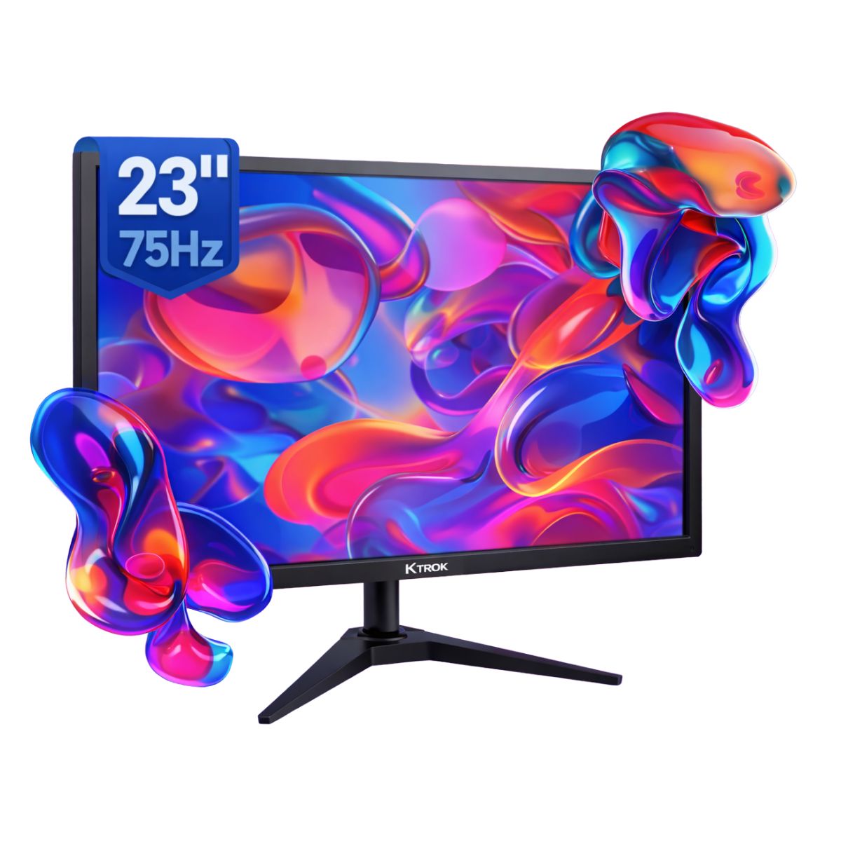 O Monitor Ktrok de 23 polegadas oferece qualidade de imagem, versatilidade e design moderno para o dia a dia. Com tela Full HD widescreen, proporciona uma experiência visual confortável e imersiva, sendo ideal para trabalho, estudos e entretenimento.